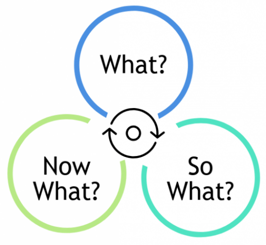 Begin with ‘what?’ What’s bothering you? Pour out onto the page everything that is bugging you about this thing). Once you’ve run out of things to say, you can move on to the next step: So what? Identify what the deeper significance is to you of this event/ issue/ problem. Why are you so affected? Often doing this step can help us to identify the underlying significance or meaning of a seemingly minor incident and to gain some insight into why it’s bothering us so much. Once you have done this, you can move on to the third what: Now what? This is where you take stock of your newly acquired insight and make decisions about the way forward.
