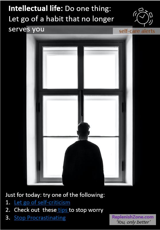 Self care alerts: Intellectual life: let go of a habit that no longer serves you… Posted on 17th Oct 202018th Sep 2020 by Farrukh Akhtar Posted in self-care Share this:Tweet Related